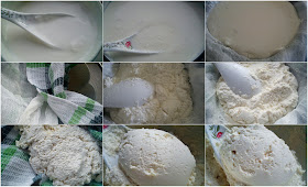 Pour the cream into a very thick handkerchief and drain the whey for 2-3 hours, then put it in refrigerator for half a day.From time to time you must mix in the cheese mixture, removing the cheese from the edges of the handkerchief.